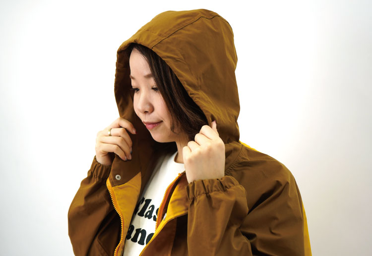 高密度でハリのある生地を使用し、立体的なシルエットを実現しました。ポリエステル100%生地で防風性も◎
