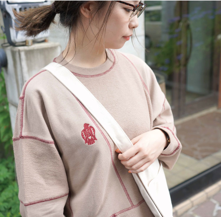 一枚で目を引く個性派スウェット!表と裏の生地を組み合わせ、シンプルで合わせやすい異素材使いと、微配色のカラーリングを採用。全体に切替ステッチの存在感も抜群です。お腹の部分にはカンガルーポケットがあり便利。サイジングもゆったりとしたビッグシルエットで楽チンです。フレアスカートでもワイドパンツでも相性良く着ていただけます。