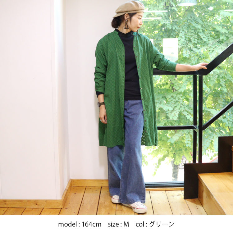 ワンピースとしても、羽織としても使えるので、これからの季節にピッタリ。