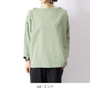 しっかりとした度詰めの天竺を使用した肩ボタン付きのバスクシャツ。