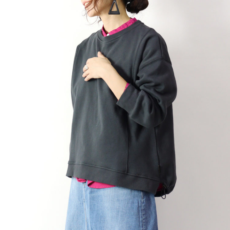 パイル風のもこもこした裏毛が着心地の良いクルーネックのプルオーバー。