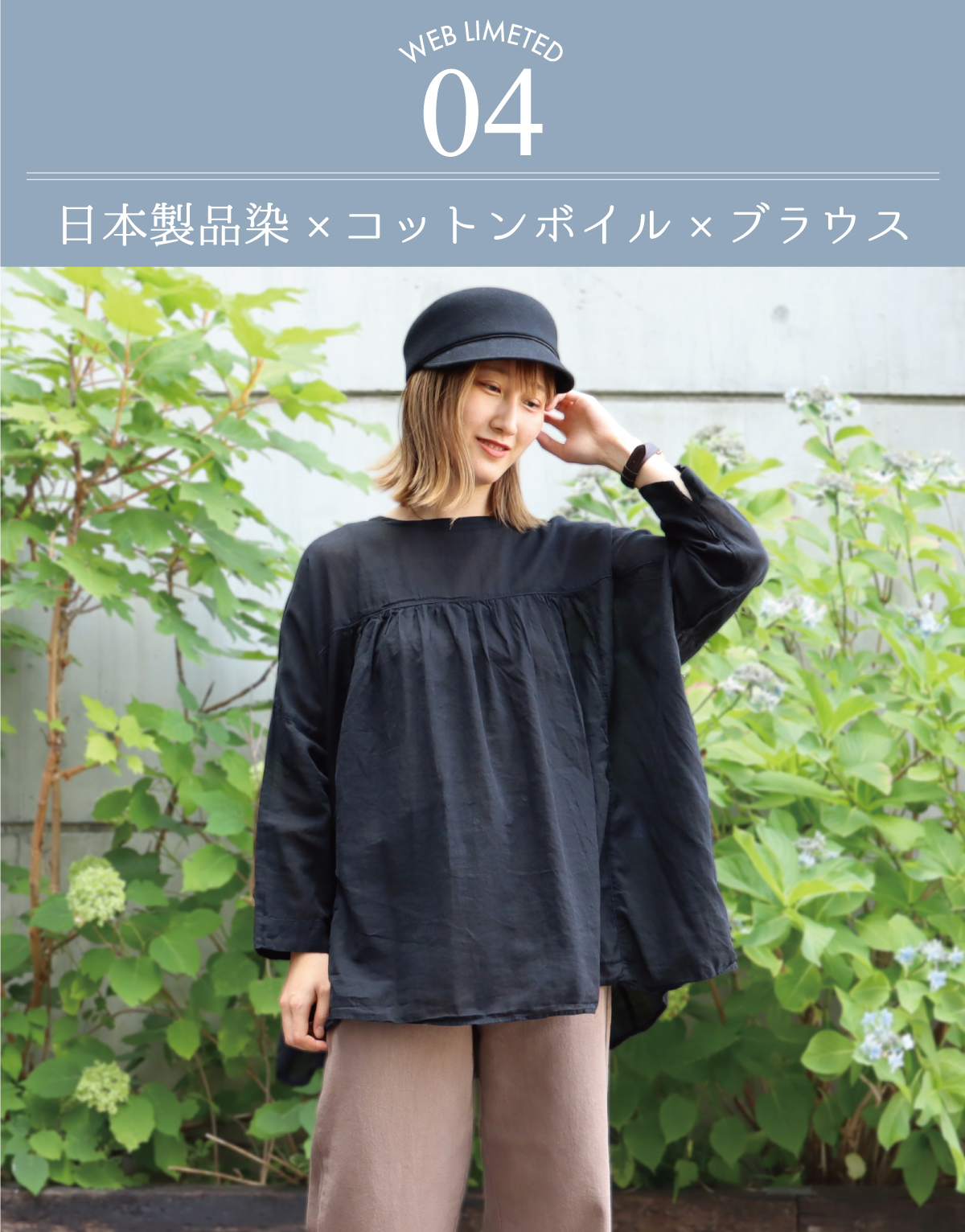 コットンボイル生地の程よい着丈のブラウスが登場!