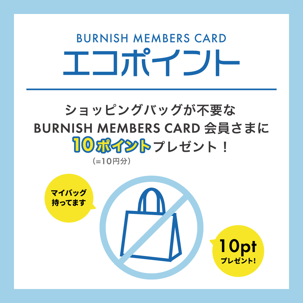 店頭でショッピングバッグご利用を辞退されたBURNISH MEMBERS CARD会員さまに、【エコポイント】として10ポイントをプレゼントいたします!
