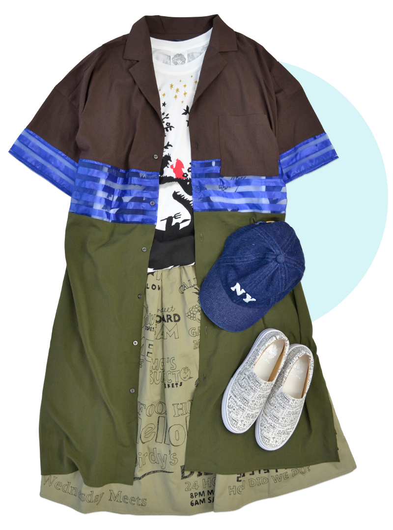 実はブロックチェックのプリントも手書き風なので、スカートとの相性もバッチリです。