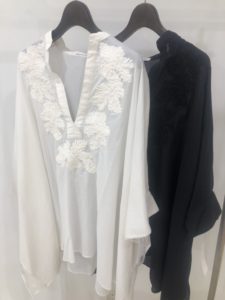 同じくモンステラモチーフ刺繍のカフタンブラウスもございます。