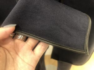 襟元とケープには合皮のパイピングが施されていて上品さもありますね。