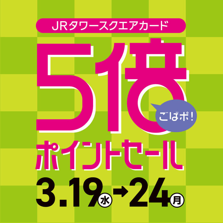 期間中、JRタワースクエアカードのポイントがいつもの5倍にアップ。