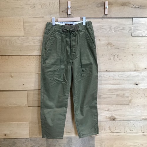 生地には、硫化染料(デニムの様に中白に糸が染まります)で染めたミリタリーサージを採用