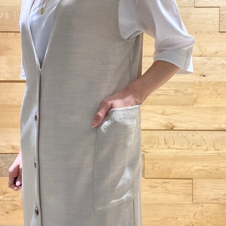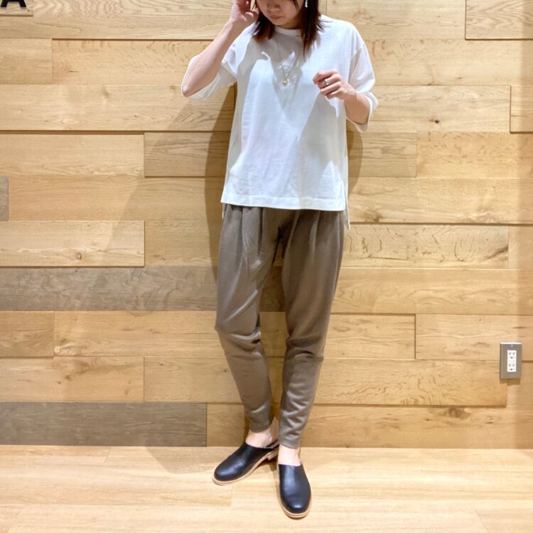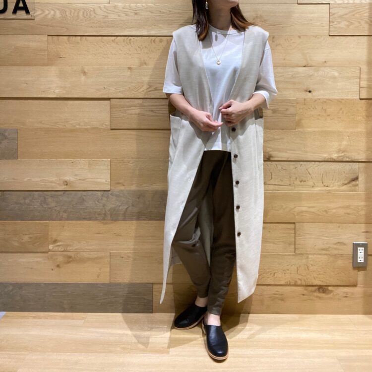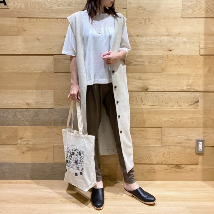 リネンのような質感なのでカジュアルアイテムとも相性良くコーデ