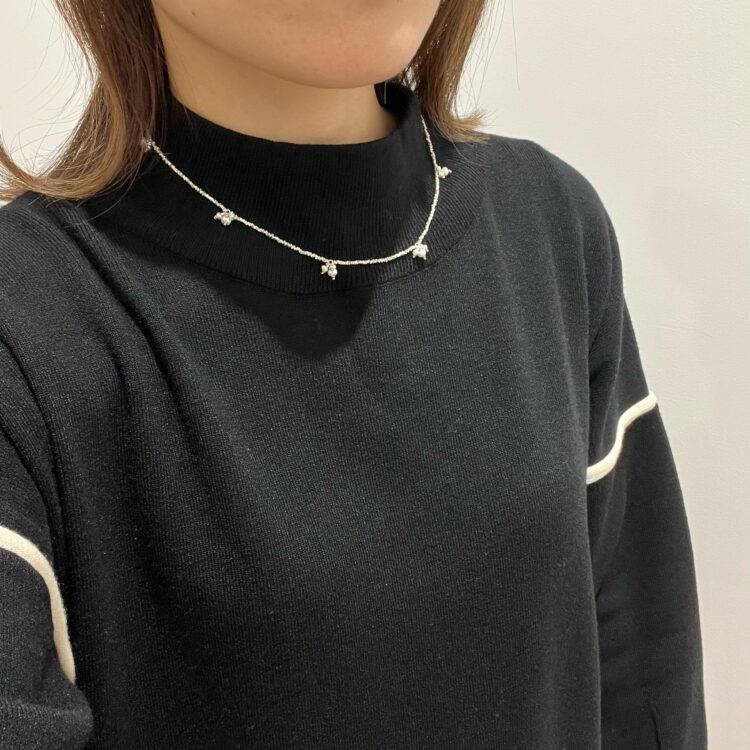 極小パールを粒々の花のようにデザインしたネックレス。程よい華