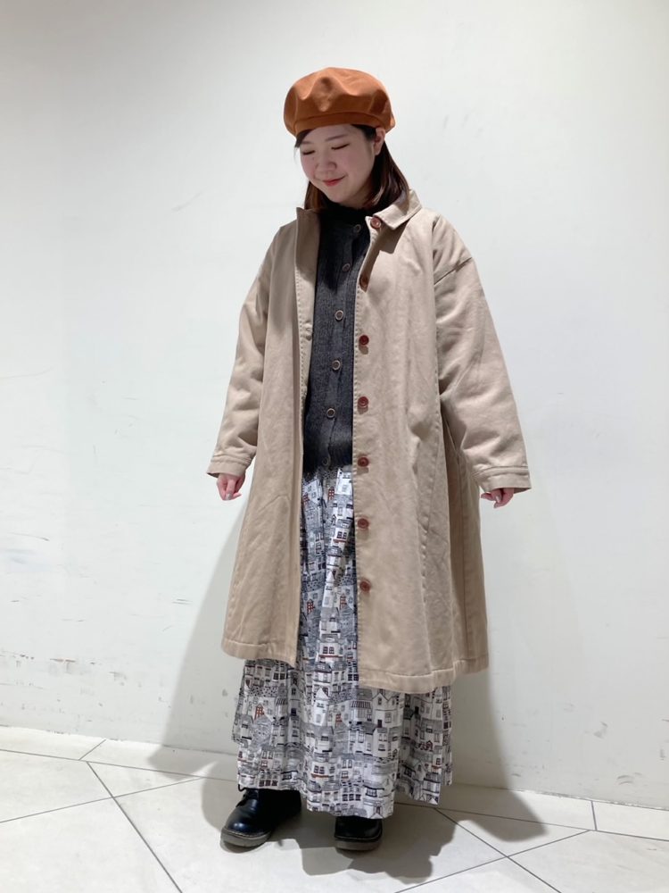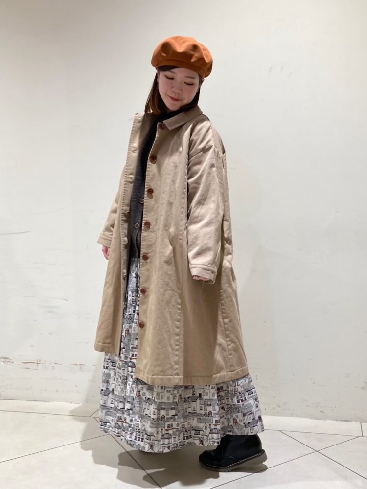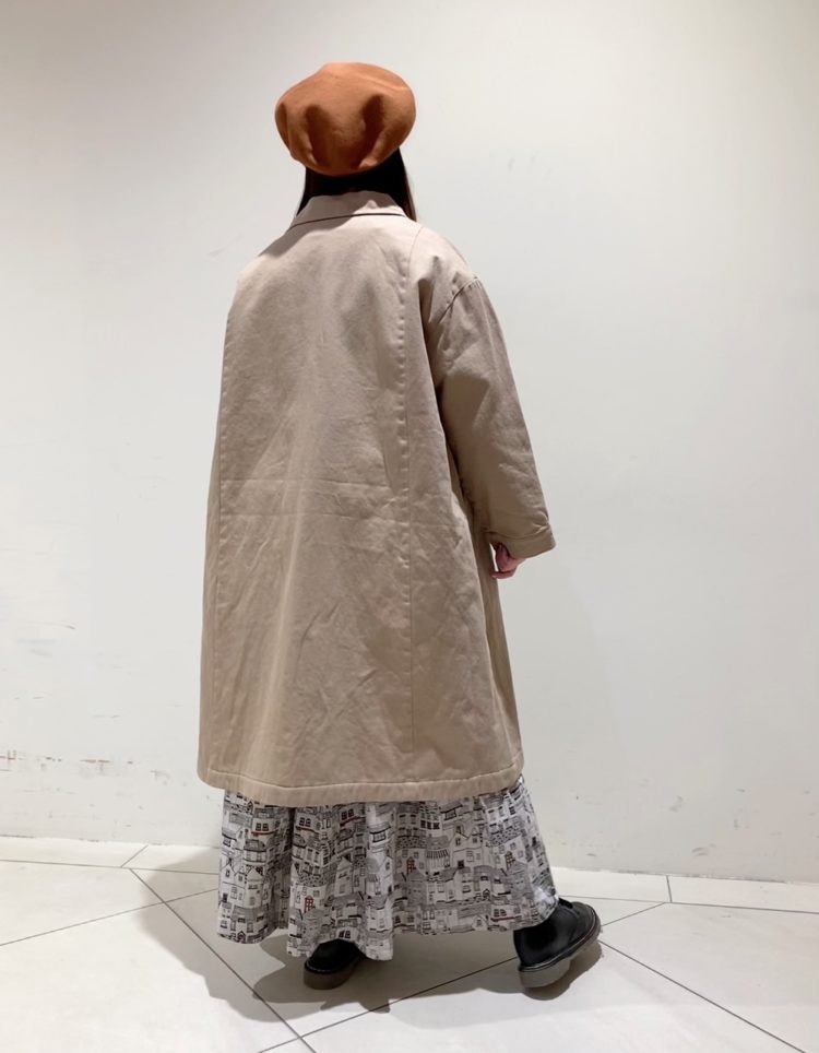 ▼ヘビーコットンツイルフリース襟付きAラインコート