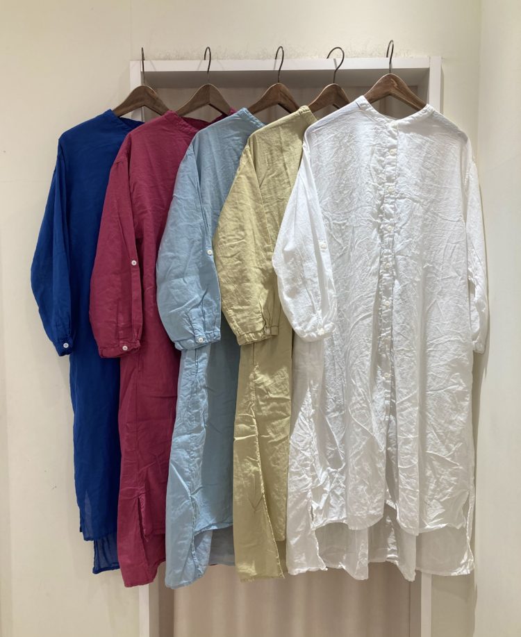 ▼別注ボイル日本製品染スタンドカラーワンピース