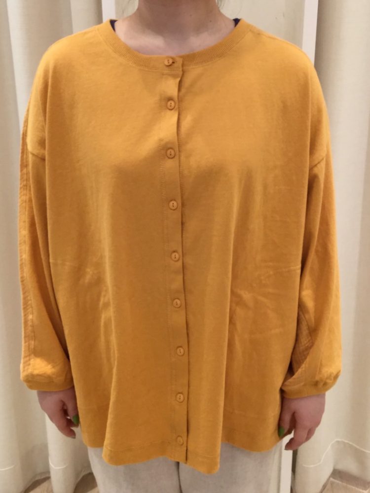 ▼ 16/-OE天竺Wガーゼ切替カーディガン