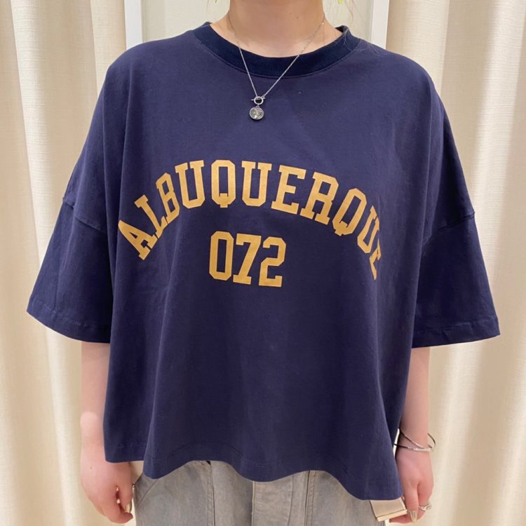「ショート丈Tシャツ×だぼだぼパンツ」。