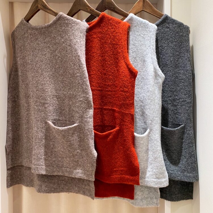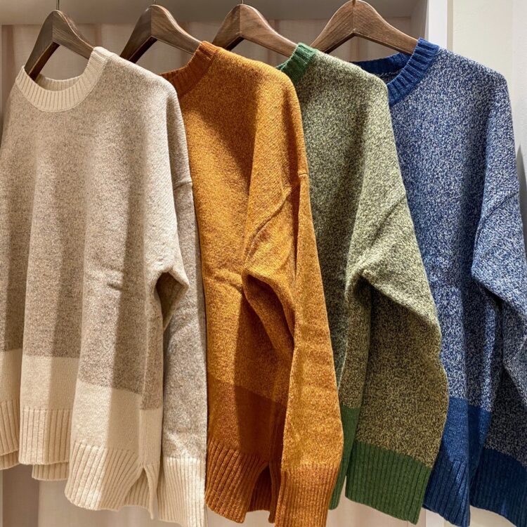 Col.エクリュ(着用商品)、オレンジ、グリーン、インディゴ