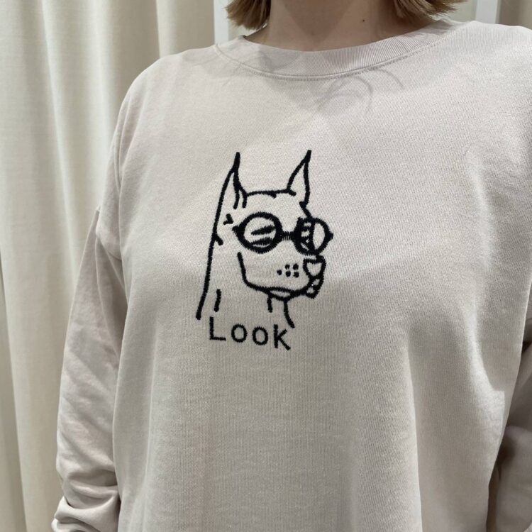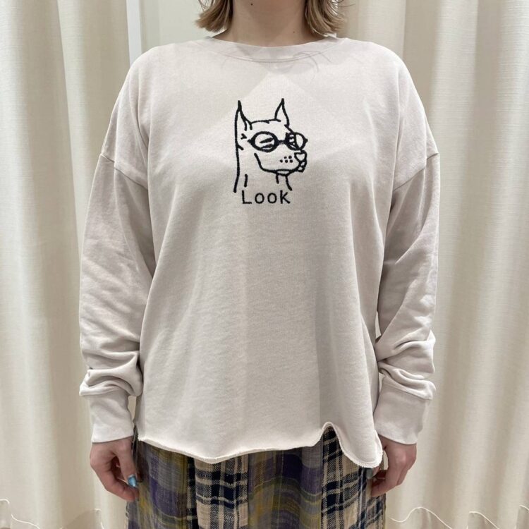 【30/10裏毛ハードウォッシュdog刺繍ワイドクルー】