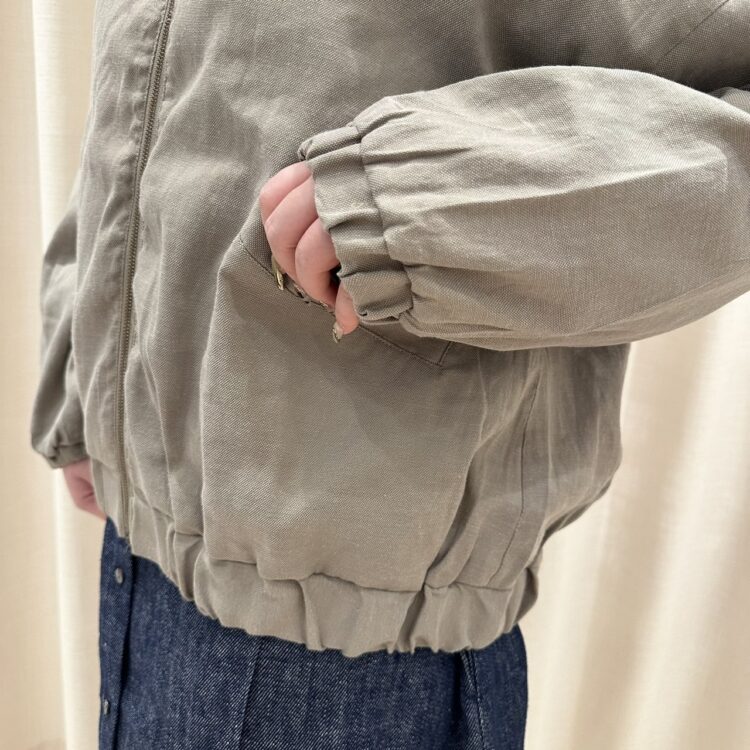 ▼ 綿麻無地グレンチェックスタンドカラージャケット