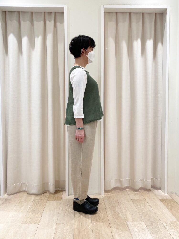 Col.フラックス、マスタード、グリーン(着用商品)、ネイビー