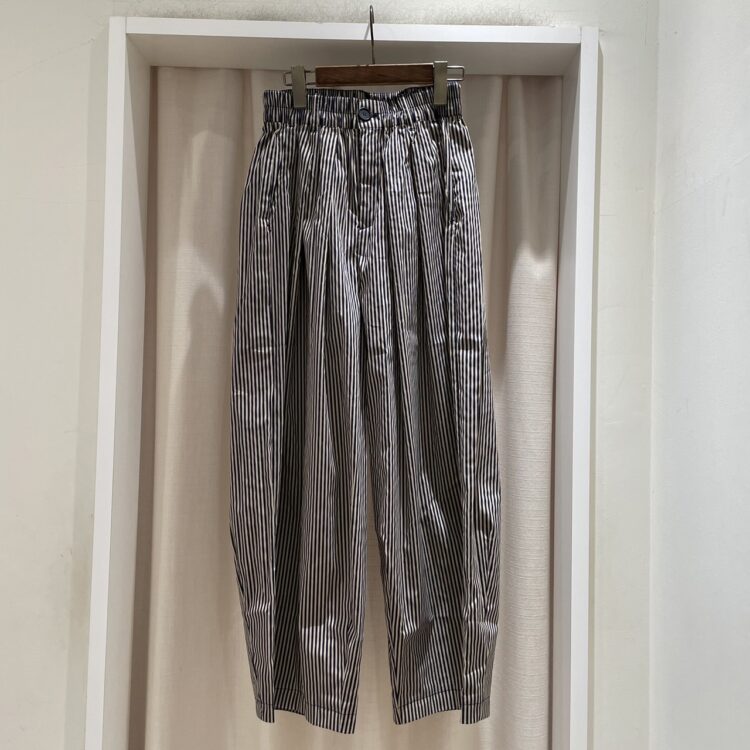 【綿ナイロンbioストライプタックワイドパンツ】