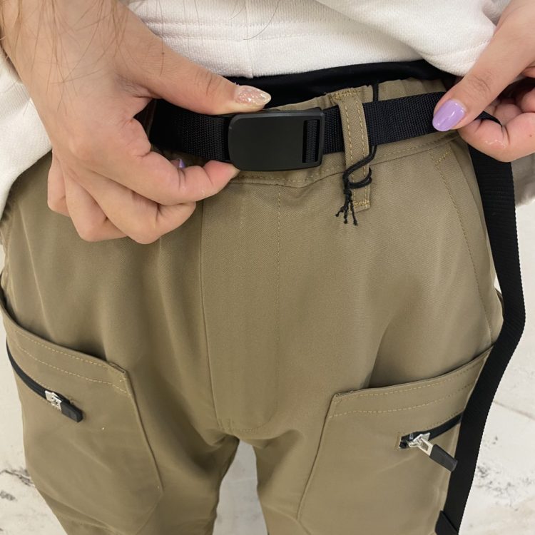 キャンプなどアウトドアシーンに活躍するギアパンツ。
