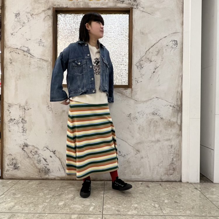 先程ご紹介したアイテムとセットアップでも使えるボーダースカート???