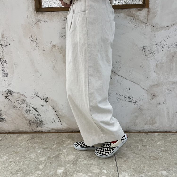 ワイドなシルエットなのでトップスを中に入れてもよし、タイトめなトップスと合わせてもよし、今回のようにゆるっとコーデで合わせてもよし!