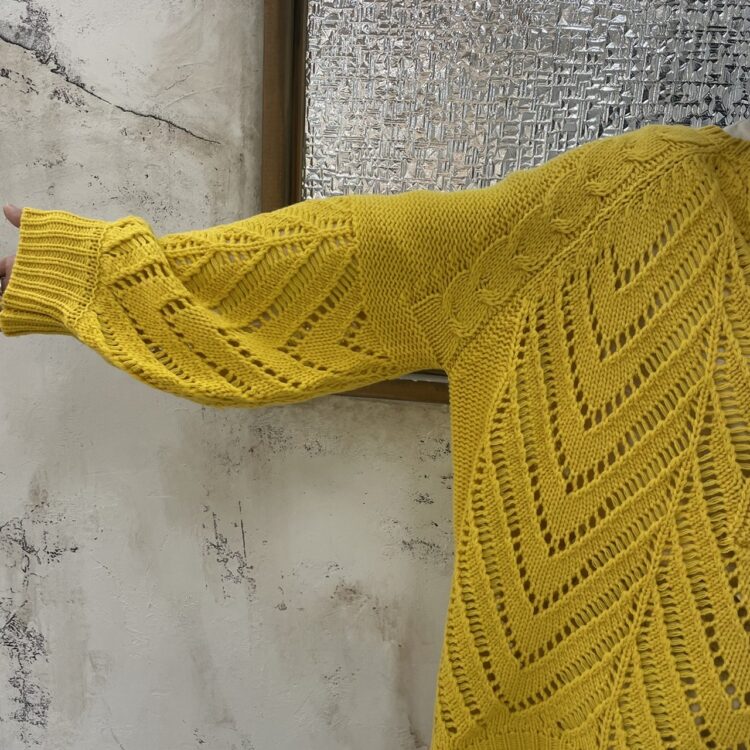 網目が可愛らしい透かし編キーネックニットでございます💛