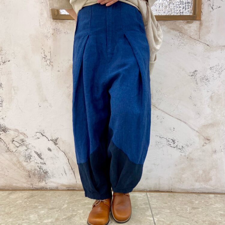 切替デザインとシルエットが特徴的な08mabの新作パンツです👖