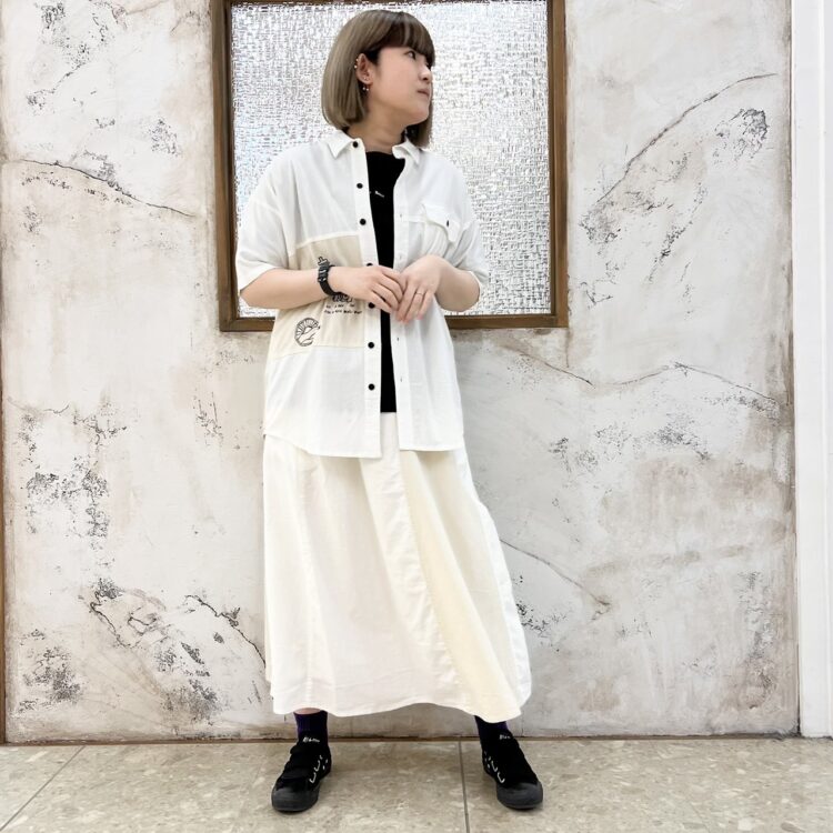 ホワイトとアイボリーが爽やかな印象を与えてくれるシャツセットアップ👔