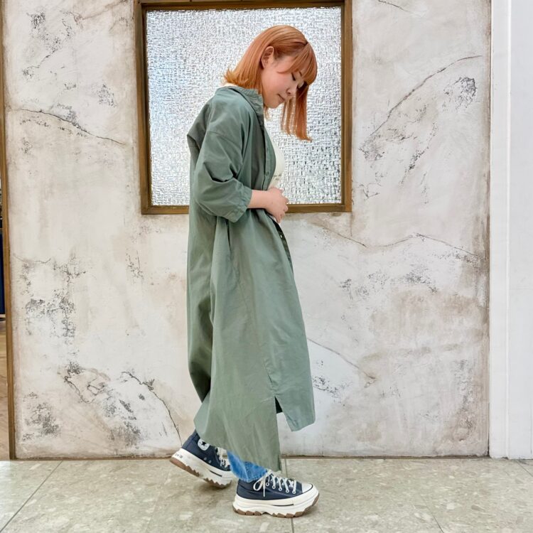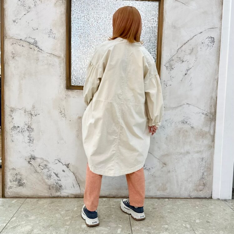 前開きで着ても良し、ボタンを閉めてブラウスとして着ても良し、、