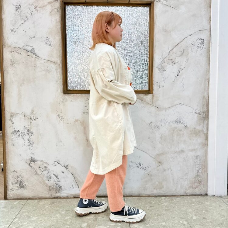 ボトムスは先程のテーパードパンツの素材違いです!!