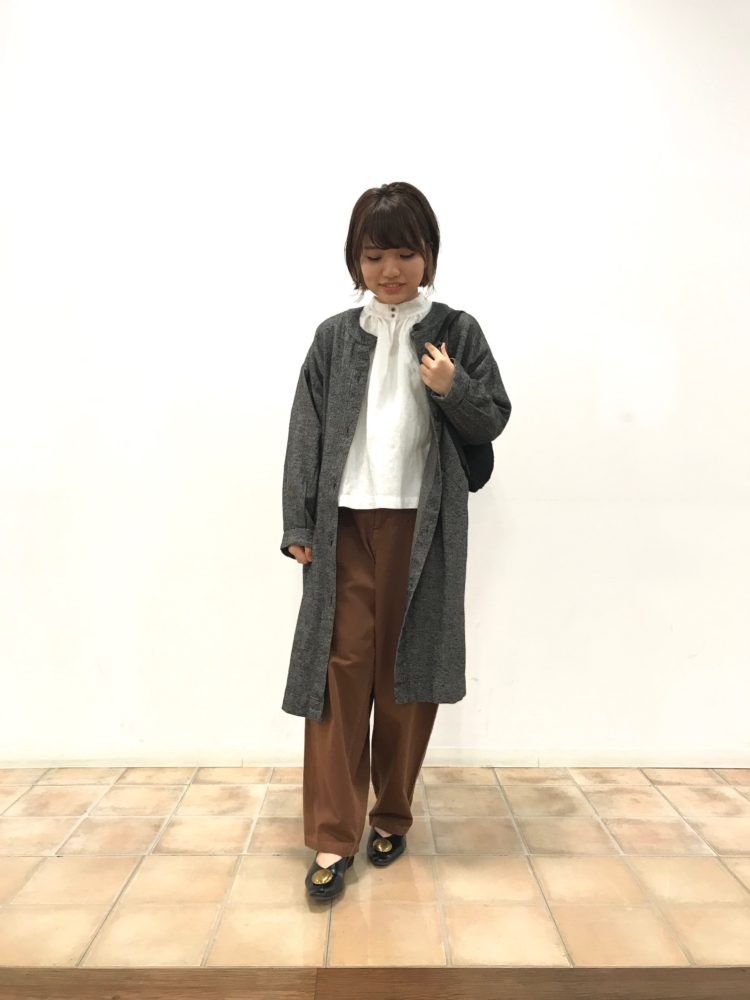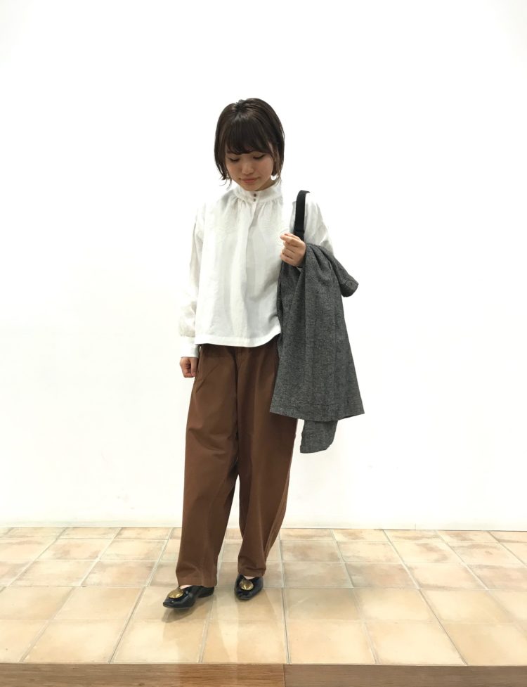 《SUN VALLEY》のノーカラージャケットと《Cafetty》の新作♪タックコクーンパンツで秋のナチュラルコーデ♪