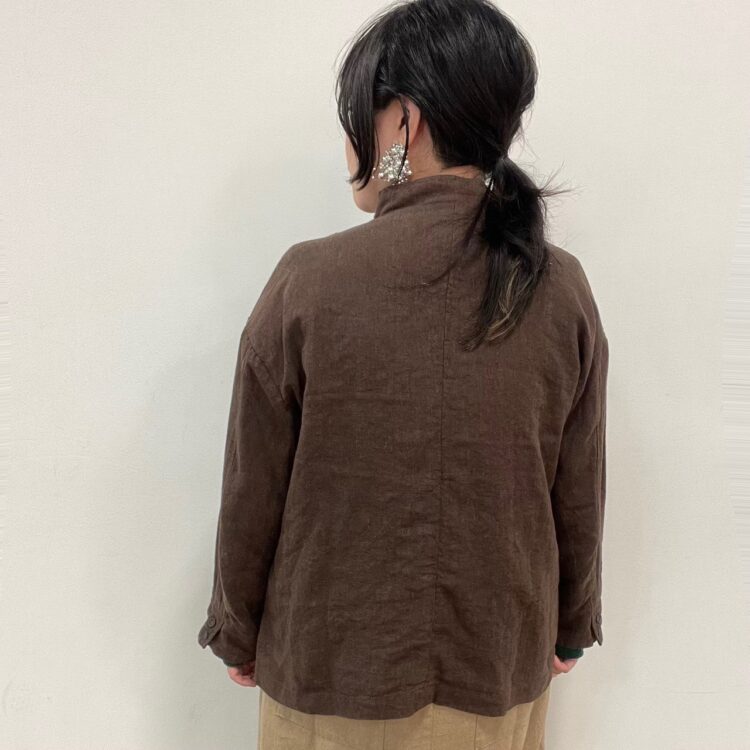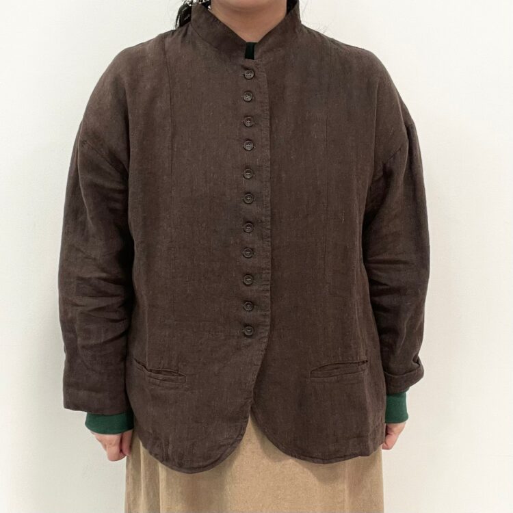 《08Mab》特有の多ボタンデザインに、スタンドカラーや裾の丸みのあるデザインがシックで大人な雰囲気◎