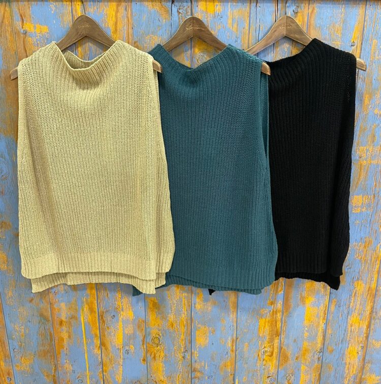 ★コットン×アクリルナイロンループ引き揃え畦編みモックネックニットベスト