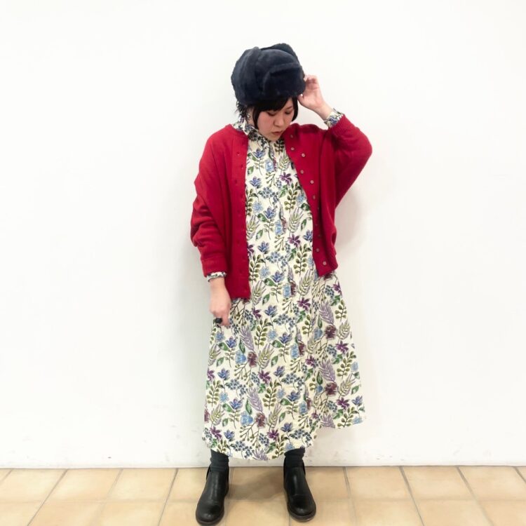 2つめはカーディガン+ワンピースコーデ。