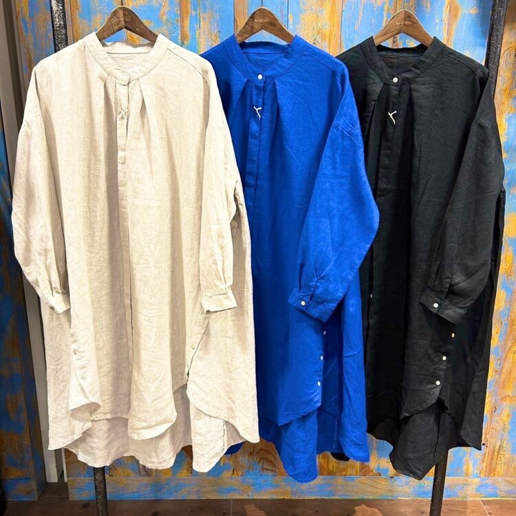 冬物よりも少し薄く、柔らかい手触りの14番手リネンのワンピースです。