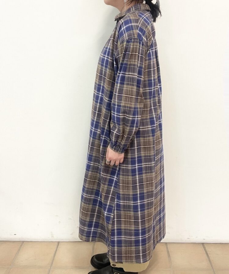 ★綿麻平織チェックガラシャツワンピース
