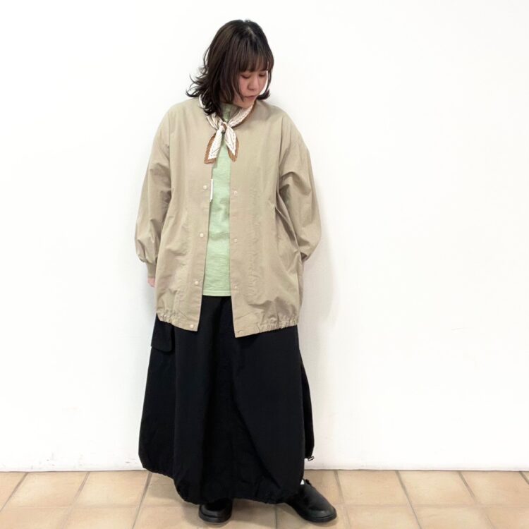 こちらは丈に前後差があり、サイドのポケットや後ろの裾に入ったスリットがアクセントになっています。