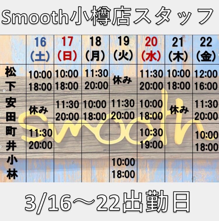 本日もsmooth小樽店のブログをご覧頂きありがとうございます。
