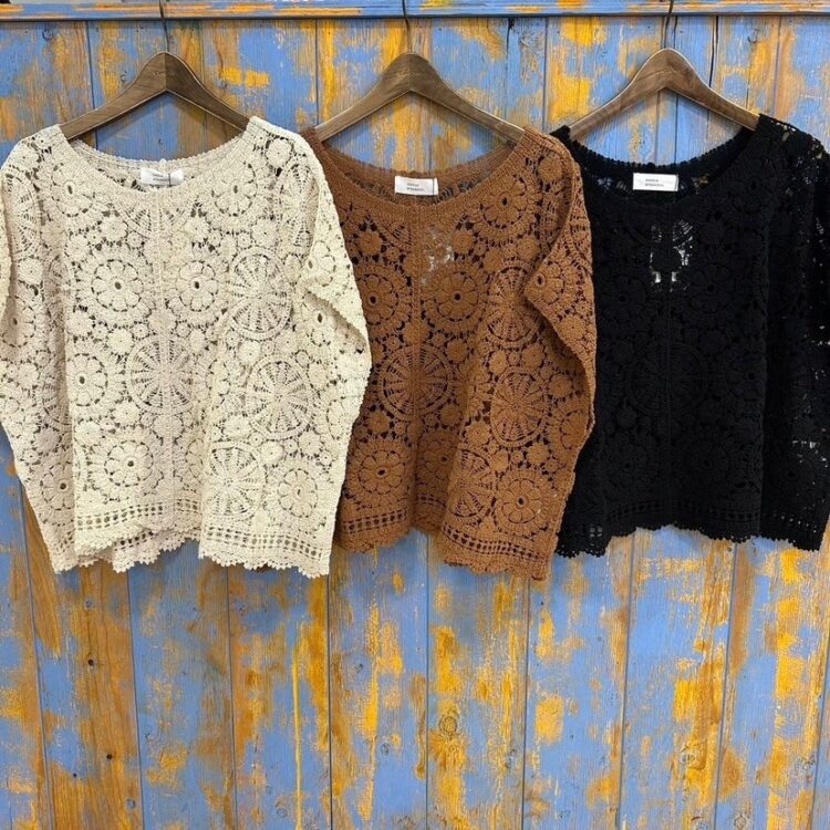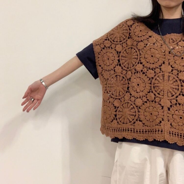 細かな編みのデザインはインナーでコントラストをつけると柄がはっきりして可愛い♡