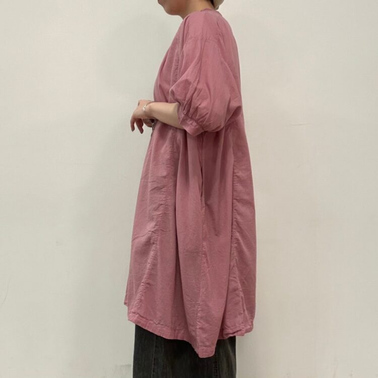 前開きワンピースなので、羽織でもインナーと重ねて前を閉じて着ても◎