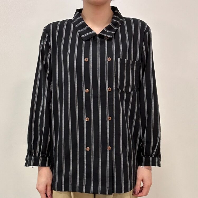 珍しいダブルボタンのシャツで、今時期は羽織にしても◎