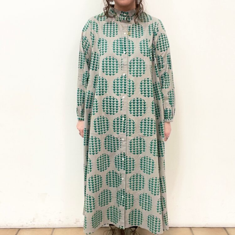 背中側のヨークはボタンで留まるデザインなので広がりを抑えて着ていただけます!