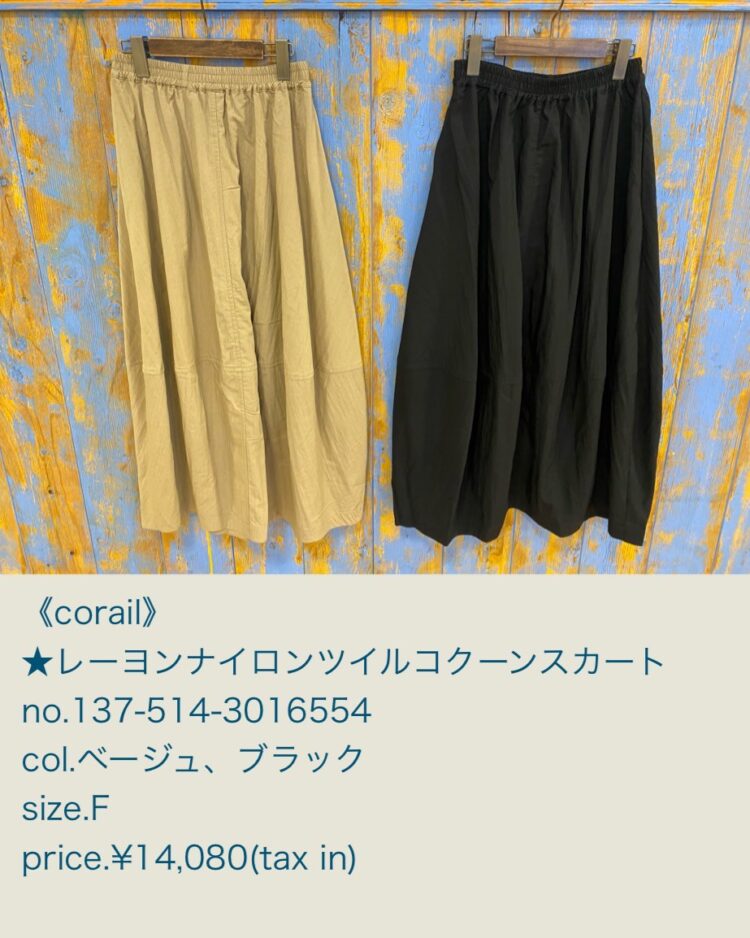 今回は《corail》からの新作がたくさん入荷したので、コーデで紹介していきます!