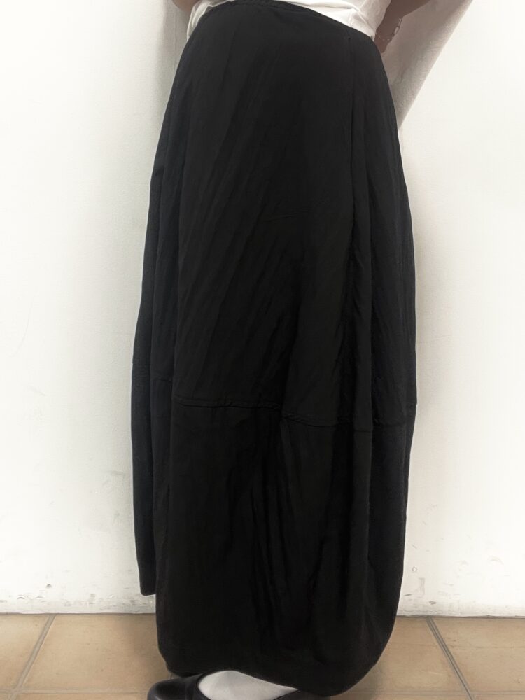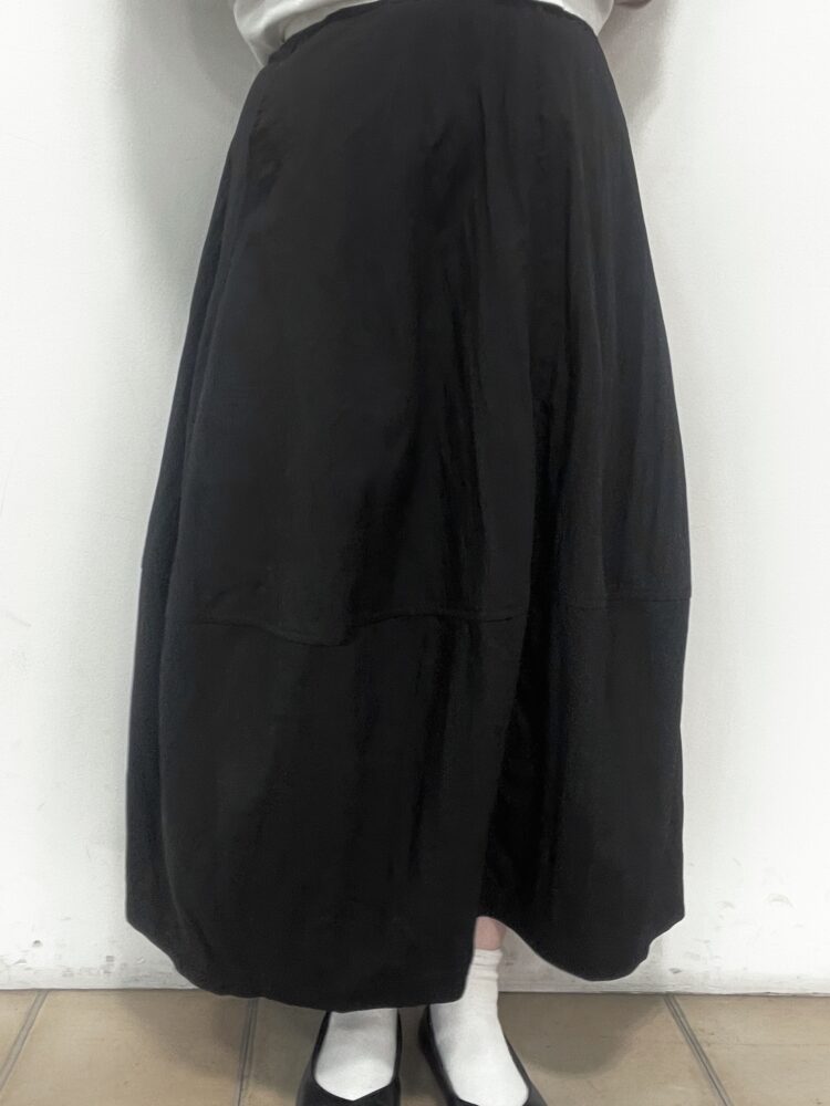 下側にボリュームのあるコクーンスカートに、トップスはスッキリと短めのものでまとめました◎