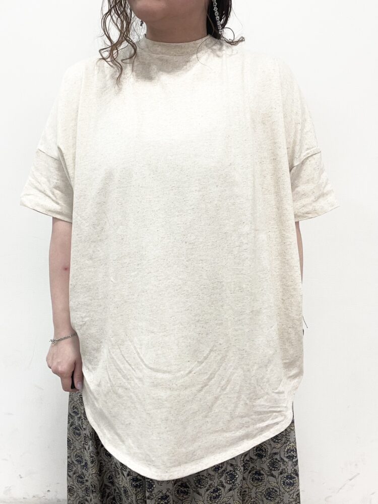 ラウンドになった裾と、スッキリとした首元が特徴のチュニック丈Tシャツです◎