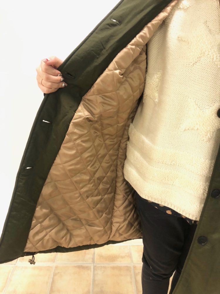 肩を落としたオーバーサイズなので、このように中にニットも着込みやすく、、♡