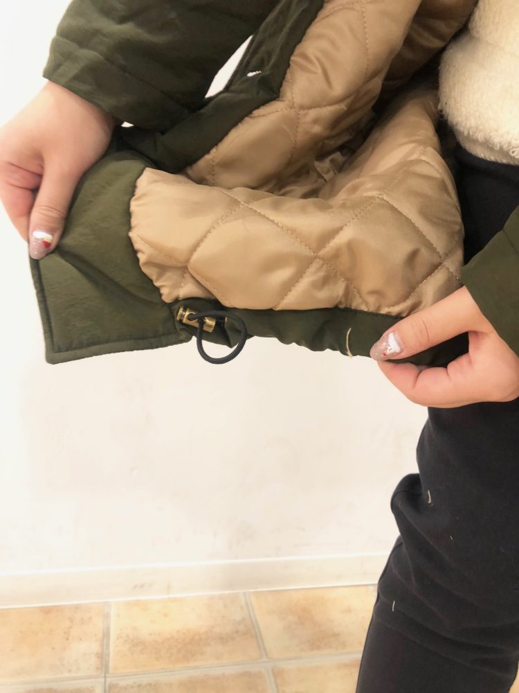 裏地は表地とは異なるカラーのベージュのキルティング素材になっており、