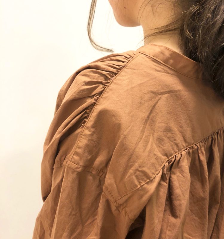 フロントの肩部分とバックにギャザーをたっぷりと寄せているので、ふわっとしたシルエット◎