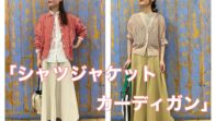 肩に羽織って合わせていたのは七分袖クルーネックカーディガン。